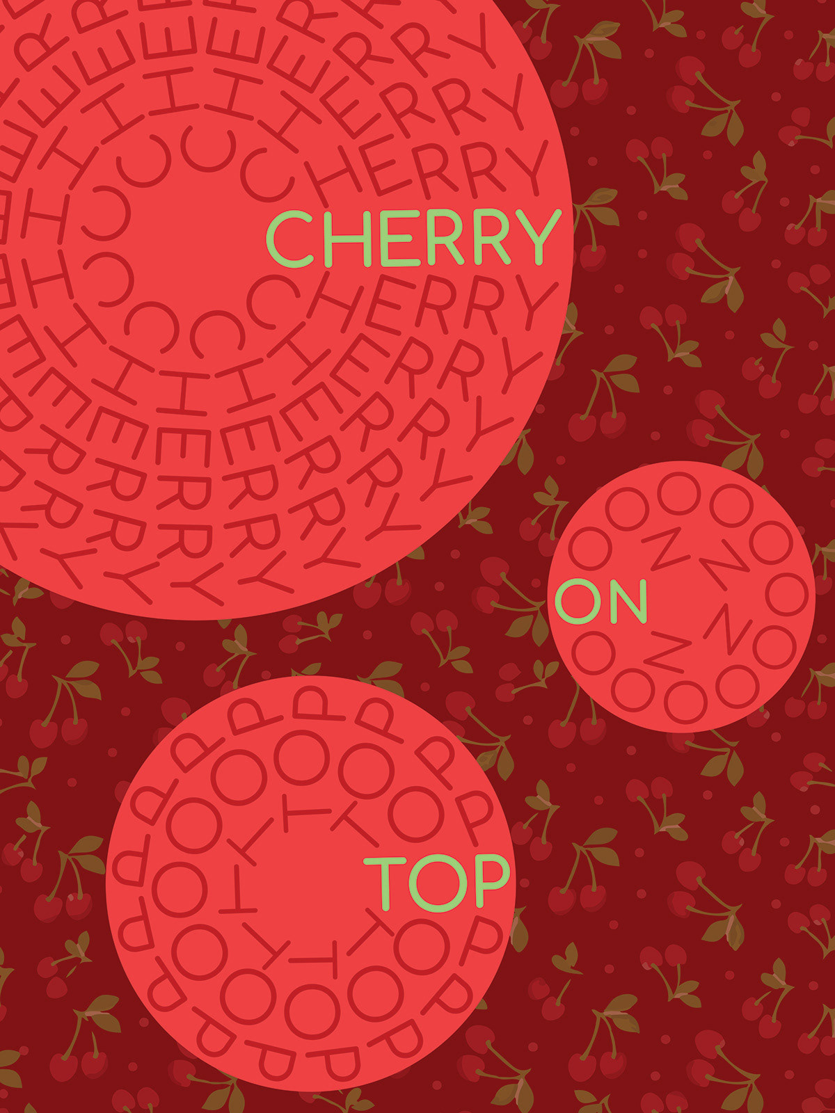 This project was assigned in my introductory graphic design course, Graphic Systems. The prompt was to choose a word or phrase and develop typographically focused poster designs. This is one of two sets I created. I wanted to explore and iterate on the shape, taste, pronunciation, color, actions, and life of cherries, both in the English language and through the visualization of the same phrase in Korean. I chose Korean because I’ve always been fascinated by the characters. I challenged myself by manipulating the legibility, x-height, baseline, and other aspects of each word in Korean.